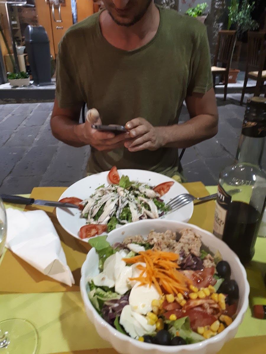 Maybe not the most authentic but hit the spot for us. Penne with shrimp and zucchini was tasty, carne alla pizzaiola had a rich flavorful sauce and the meat was tender. Grilled veggies were nicely seasoned. Homemade cheese cake and pannacotta were very good. Tourist prices but close to the hotel and no wait for a table.